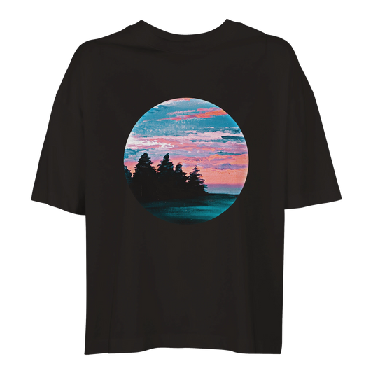 Artistic Trees and Sky T-Shirt – Oversized Organic Cotton Tee for Women | Journey to Zen